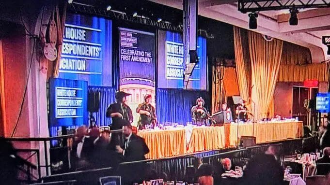 - President Trump and dignitaries—including the First Lady, Vice President, WHCA President Weijia Jiang, and entertainer/mentalist Oz Pearlman—were quickly hustled out of the ballroom.