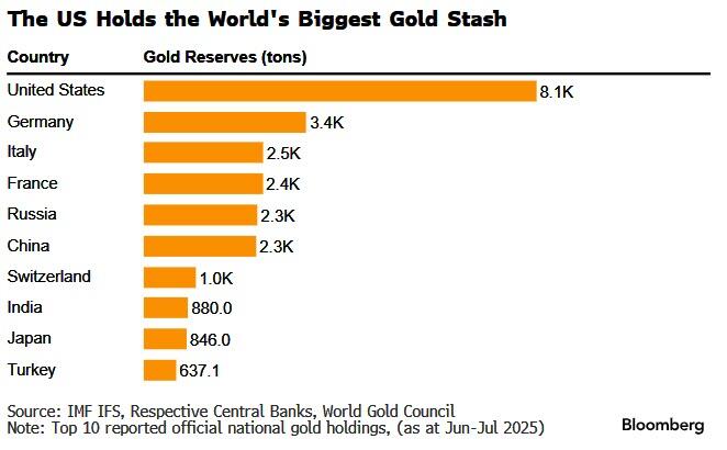 While Treasury Secretary Bessent initially dismissed the suggestion, a trillion dollars here and a trillion dollars there adds up, and it would be by no means unprecedented. As Bloomberg reports, Germany, Italy, and South Africa all have taken the decision to revalue their reserves in recent decades, as an August note from an economist at the Federal Reserve discussed.