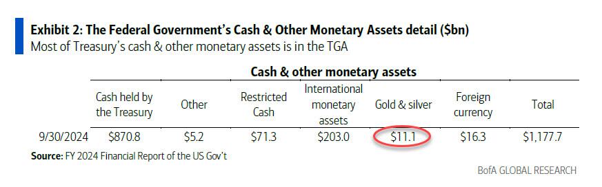 On net, a gold re-marking would increase the size of both Treasury & Fed balance sheets + allow for TGA to be used for Treasury priorities (i.e. SWF, pay down debt, fund deficit, etc). Meanwhile, the Fed and Treasury magically conjure some $990 billion out of thin air to be spent on whatever, all because the Treasury agrees that the fair value of gold is… the fair value of gold.
