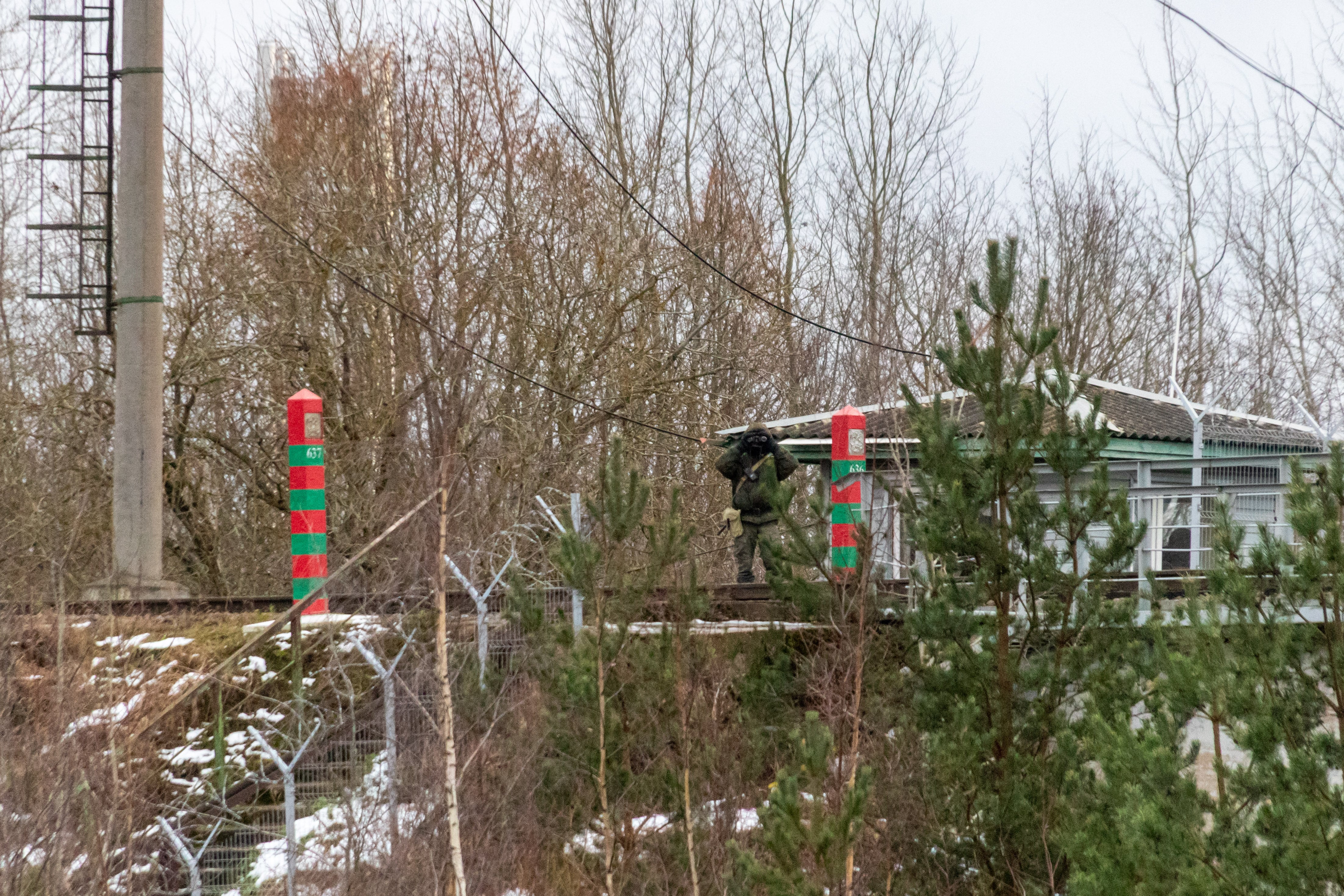 A bored-looking Russian border guard, Kalashnikov rifle slung over his shoulder and dressed in a thick camouflage coat, observed this Defense News reporter through his binoculars as he snapped pictures of Russian fishermen braving the cold and reeling in a meager haul on his side of the river. The soldier was the only sign of activity on the once-busy railroad bridge.