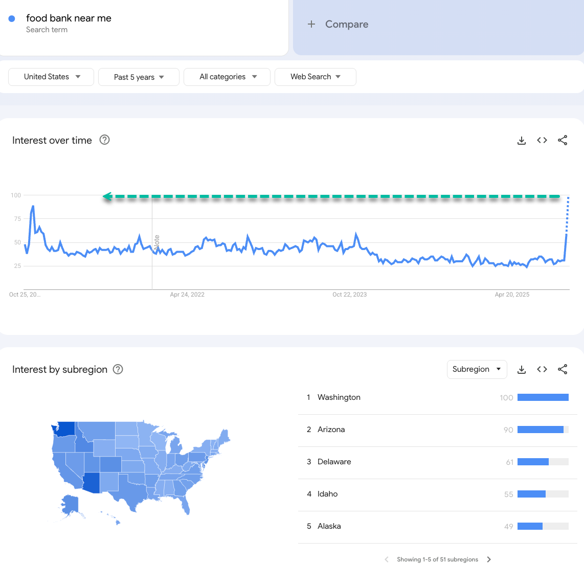 Google Searches for “food bank near me” are exploding to a five-year high.