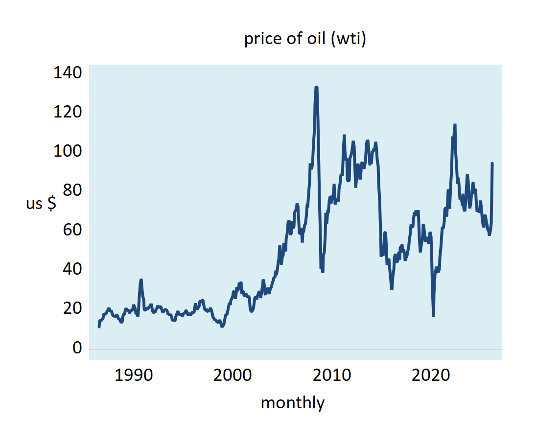 Most analysts are of the view that the sharp increase in the price of oil to around $95 per barrel (from around $64 at the end of February) is likely to lift the rate of inflation as depicted by the yearly growth rate in the CPI.