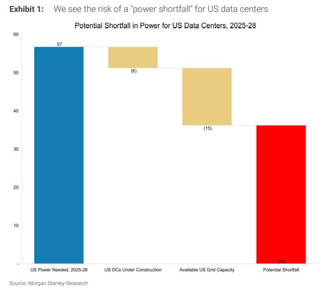 Recall, last December, Morgan Stanley calculated that the US would need at least 36GW in new power to be brought online by 2028 to energize all the (yet to be built) data centers, a number which one year later is surely far higher.
